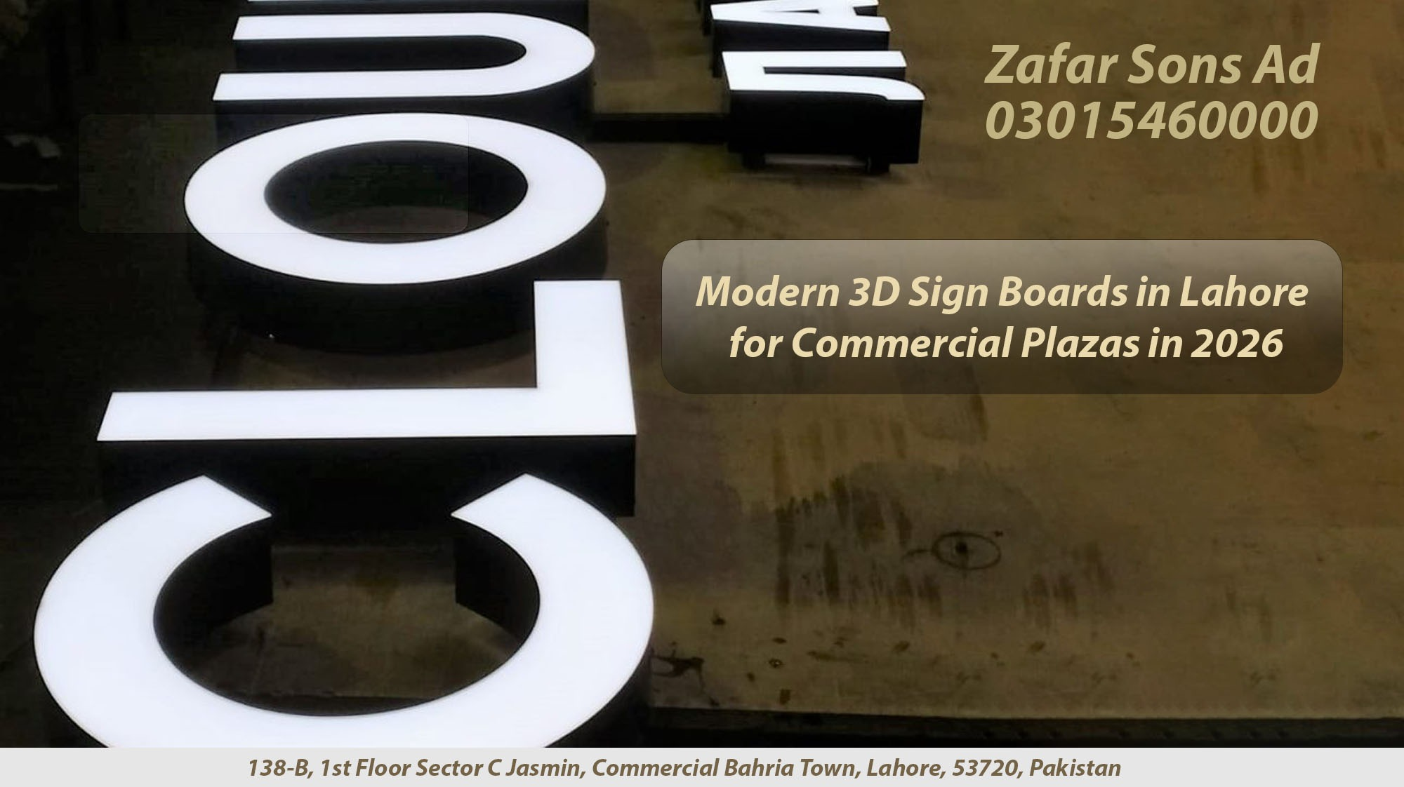 3. Modern 3D Sign Boards in Lahore for Commercial Plazas: A High-Impact Branding Tool