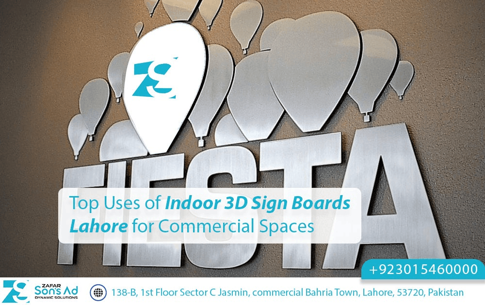 Indoor 3D sign boards Lahore continue to shape commercial interiors in 2026. They support branding, enhance professionalism, and improve customer experience. Businesses across Lahore benefit from well-designed interior signage. With expert solutions from Zafar Sons Ad, commercial spaces achieve lasting visual impact and strong brand identity.